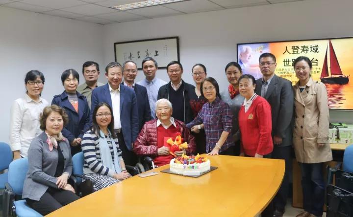 2017年11月1日,同事们为陈吉余先生庆祝97岁生日