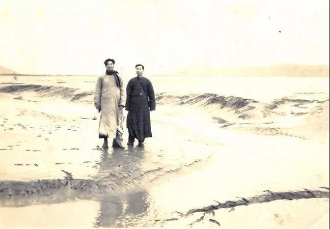 1946年,陈吉余(左)在浙江开展钱塘江地质调查