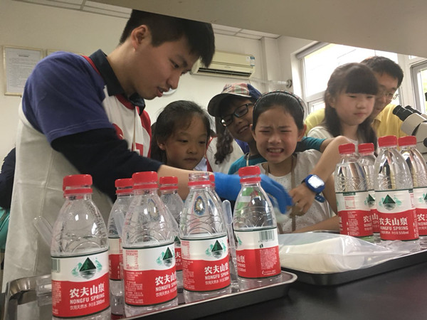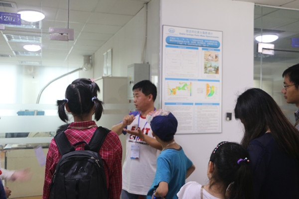 报告后,在开放日志愿者的带领下,公众们分组进行了实验室参观,并体验了有趣的小实验。通过野外仪器室的参观,公众们对科研人员野外工作有了一定了解;通过对室内分析仪器和遥感信息室的参观,公众们对同位素、气相质谱、遥感应用技术有了一定的认识。楼顶的温室实验室里,湿地植物的培育让大家感到新奇;盐度实验室的琥珀鉴定,有孔虫的显微镜观察以及海水的品尝等趣味小实验更是让来参观的孩子们兴奋不已。整个过程充满了快乐,孩子们学到了科学知识,大人们拓展了科学视野。