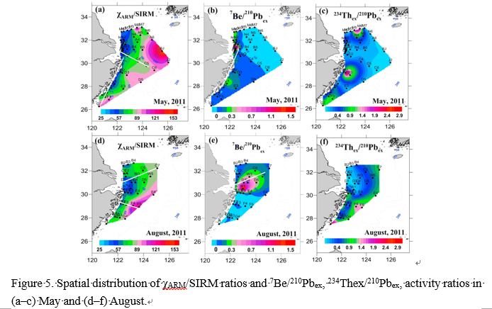 河流入海泥沙不仅是地貌塑造单元的重要物质,而且作为许多污染物和营养盐的载体,对海岸环境颗粒活性物质的迁移、转化和埋藏起着决定性作用。新沉积在近岸区域的一部分泥沙可以在一定动力条件下再悬浮和再输运,这部分泥沙在河口海岸区域的输运对于泥沙沉积/再悬浮过程和生物地球化学进程具有重要控制作用。不同放射性同位素(7Be、234Th、210Pb)半衰期不同,具有颗粒活性,是泥沙来源和输运过程的天然示踪剂。本文通过对2011年5月和8月在东海采集的表层沉积物中以上核素和相关磁学参数的分析,发现中7Be/210Pbex的高值在春季主要存在于南部,在夏季主要分布于长江口附近区域磁学参数χARM/SIRM 在春季由河口向东南方向增大,在夏季则向东北向增大;这些参数的变化规律与长江冲淡水(CDW)的季节性变化规律相似,表明泥沙在在河口附近,受 CDW 的影响呈现季节性的输运趋势。在浙闽沿岸的一些区域,7Be/210Pbex呈现离岸减小,χARM/SIRM 呈现离岸增加的趋势,说明了泥沙存在离岸输送。通过210Pbex的质量平衡模型,本文估算出最多有约占长江年均泥沙输入量14%的泥沙可以输出内陆架至中陆架。本文在 2011 年春、夏季都观测到了泥沙的离岸输送,说明其输运动力机制可能不是由季节性变化的沿岸流主导。234Thex/210Pbex的分布说明长江输入的泥沙在沿岸向南输运的过程中存在明显的再悬浮过程。磁学参数χ和SIRM的分布进一步说明该区域的泥沙可能源于苏北沿岸区域的细颗粒泥沙与北部残留砂的混合。最后,本文提出结合磁学参数和放射性核素可以更好地示踪研究大河影响下的陆架边缘海区域的泥沙输运。