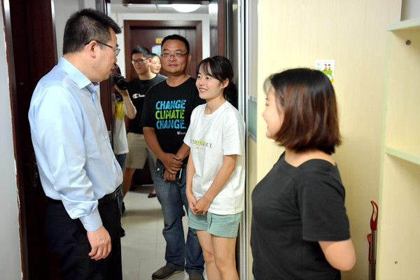 当天下午,副校长孙真荣在河口院学生工作负责人童春富副书记陪同下,来到学生公寓看望刚刚报到的河口院研究生新生,孙校长与研究生进行了亲切的交谈,实地察看了新生宿舍条件,详细了解了新生的家庭状况和学业情况,鼓励研究生提早规划和开展科研工作。