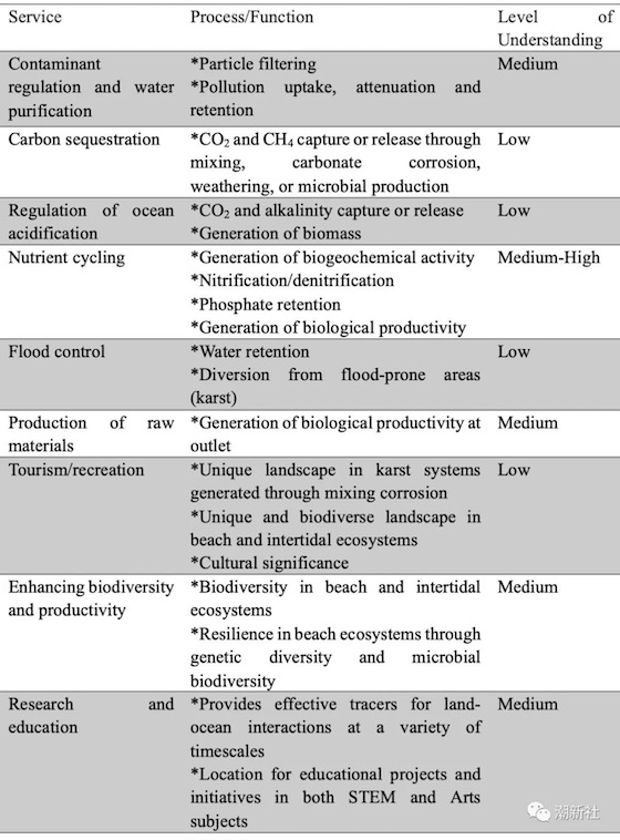 表1. 地下河口研究中研究进展汇总以及未来需要进一步精进的内容(引自Rocha et al. 2021)。