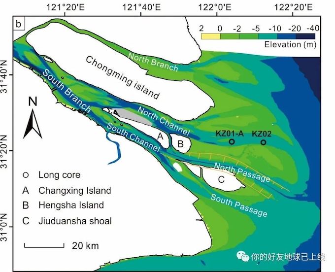 这进一步说明了该泥质沉积形成于盐水楔型河口的最大浑浊带,由涨潮流(包括风暴潮)和河口环流侵蚀、搬运外海的早期沉积物,再沉积于北港。因为盐水楔对湍流的抑制、加上最大浑浊带高浓度的悬沙,泥沙在沉积前不能得到充分曝光,因此保留了更早的年代信息。
