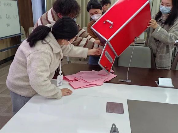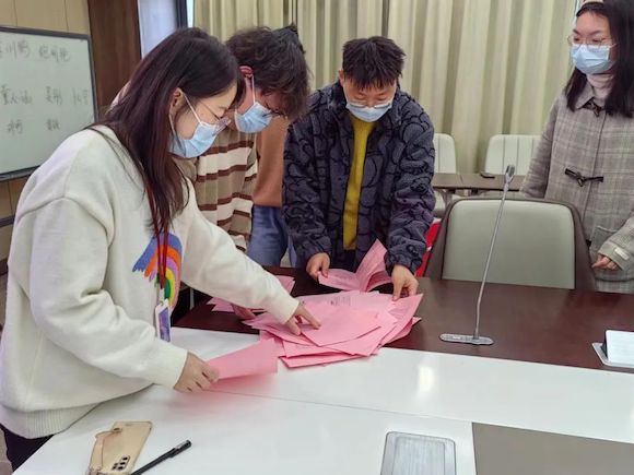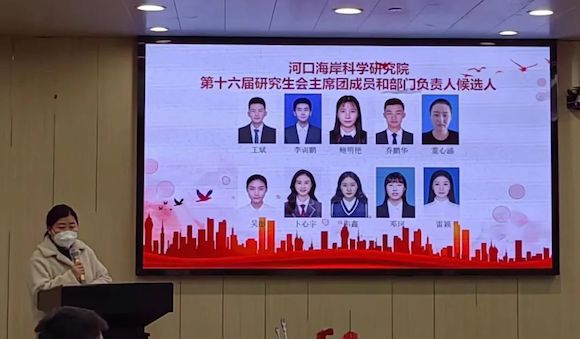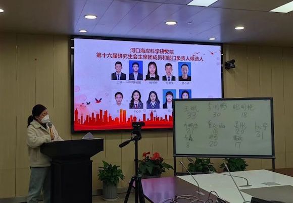 按抽签顺序,候选人王斌、李训鹏、鲍明艳、乔鹏华、董心涵、吴彤、卜心宇、韦鑫、邓珂、雷颖依次发表竞选演讲并接受提问。与会人员投票选举河口海岸科学研究院第十六届研究生会主席团成员和部门负责人。大会现场公布了河口海岸科学研究院第十五届研究生会主席团和部门负责人选举结果。