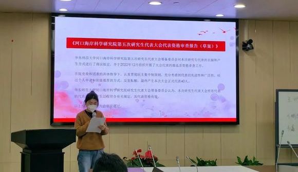 2022年12月14日13:00,华东师范大学河口海岸科学研究院第五次研究生代表大会在河口海岸大楼A204顺利召开。河口海岸学国家重点实验室和河口海岸科学研究院党委书记嵇渭萍、党委副书记童春富出席本次大会。会议采用线上线下同步进行的方式,河口海岸科学研究院的40名研究生代表参加本次大会。大会由学院团委书记、研究生辅导员霍晓丽主持。