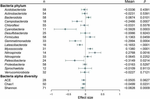 图4 塑料污染对湿地土壤微生物(门的丰度和细菌α多样性)的影响