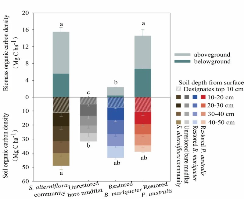 互花米草清除后本土盐沼植物恢复促进了滨海湿地碳封存并增强了气候调节效益