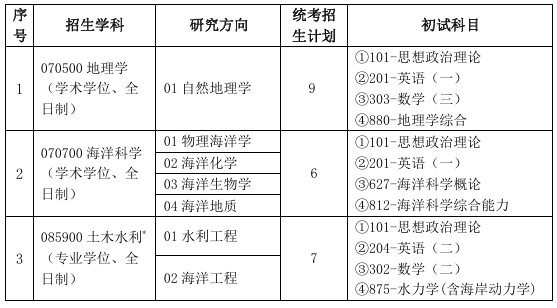 *说明:“土木水利”专业研究生入校正式取得学籍后将根据研究方向转专业为“水利工程”或“海洋工程”。