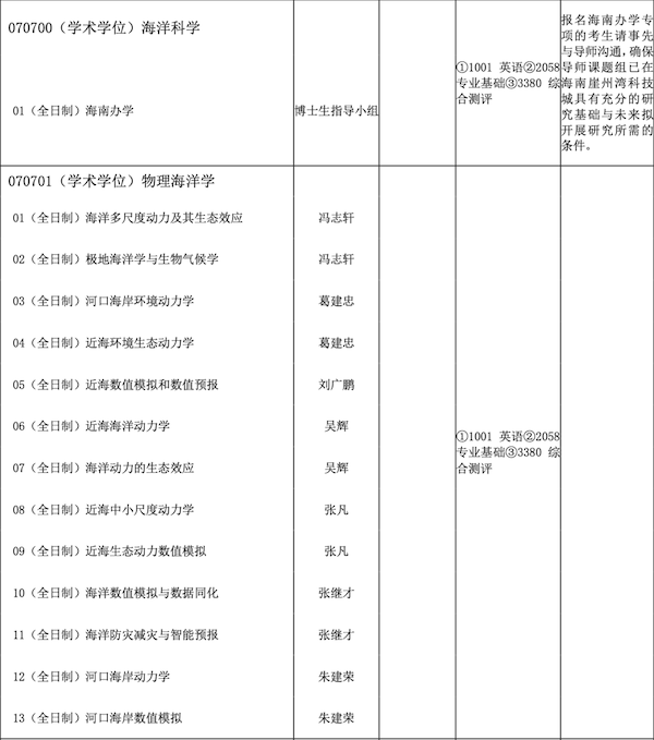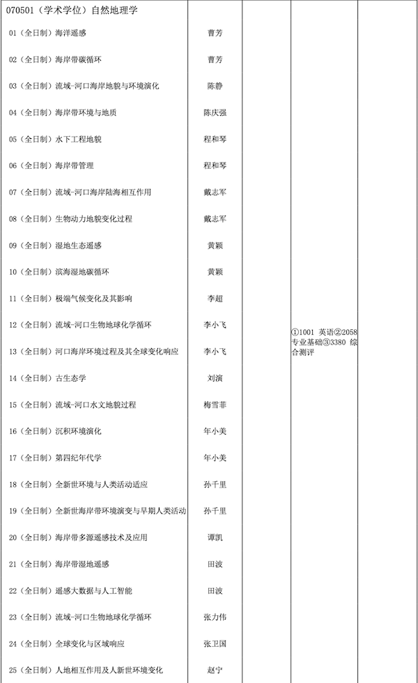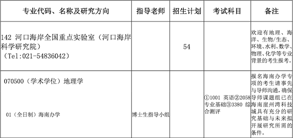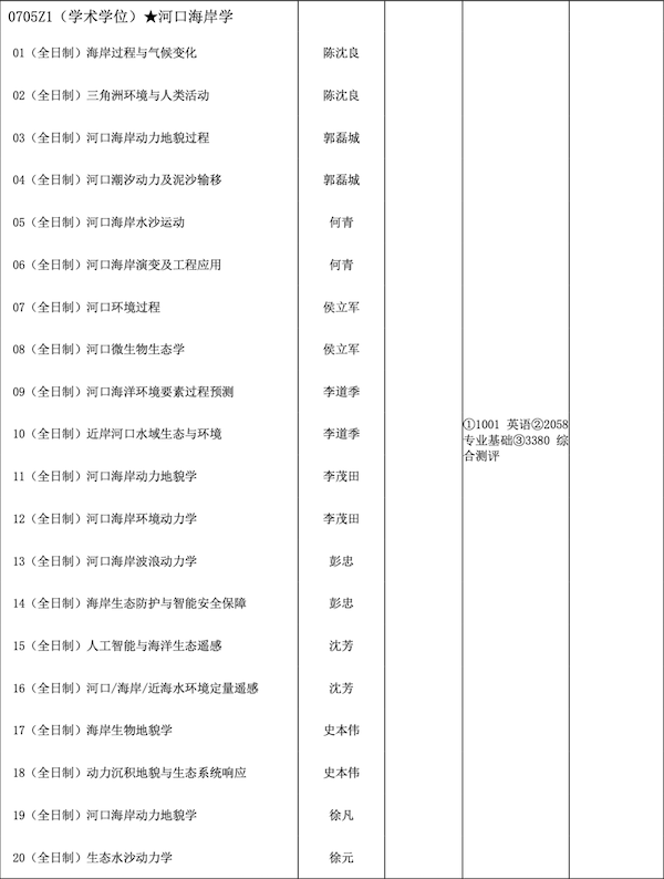 河口海岸全国重点实验室(河口海岸科学研究院)2026年博士研究生招生学科专业目录