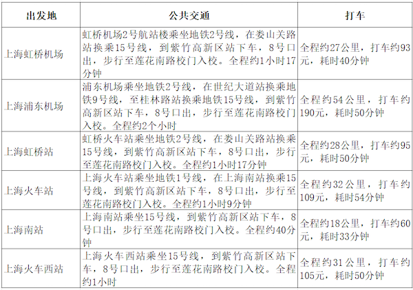 线路:交通枢纽——华东师范大学闵行校区(上海市东川路500号)