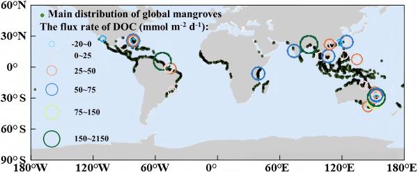 科研进展|区域至全球尺度下经由海底地下水排放输出的红树林溶解有机碳及惰性组分的研究