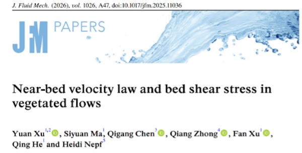 Xu Y, Ma S, Chen Q, et al. Near-bed velocity law and bed shear stress in vegetated flows. Journal of Fluid Mechanics. 2026;1026:A47. doi:10.1017/jfm.2025.11036