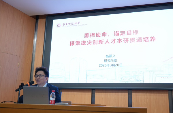 会议期间,组织教职工集体进行理论学习,研究生院副院长杨福义教授应邀作题为“锚定目标,勇担使命——探索拔尖创新人才本研贯通培养”的专题报告。他从国家战略需求出发,系统阐述了本研贯通培养的时代背景与改革方向,介绍了学校通过优化生源结构、完善课程体系、推进学科交叉、强化AI赋能等举措构建贯通式人才培养新路径的实践探索。杨福义强调,要聚焦国家重大战略需求,依托河口海岸全国重点实验室等高水平平台深化科教融汇,推动“真交叉、真贯通”的人才培养模式创新。本次报告为我院探索本研贯通培养机制、提升人才培养质量提供了重要思路与方向指引。