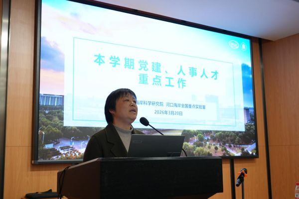 2026年3月20日,河口海岸科学研究院、河口海岸全国重点实验室召开新学期教职工大会,实验室副主任赵常青主持会议。