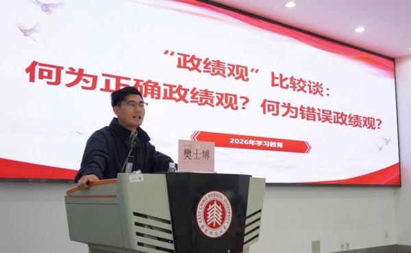 专题授课中,马克思主义学院副研究员樊士博老师受邀作了《政绩观比较谈:何为正确政绩观?何为错误政绩观?》的专题报告。他利用生动的党史故事与时代案例,以深入浅出的方式,为学员们深度解析了什么是政绩观?什么是正确的政绩观等问题。樊士博指出,2026年党中央在全党开展树立和践行正确政绩观学习教育,不仅仅是对新时代党员干部政治素养和使命担当的深刻要求,也是对全体党员的一次深刻的党性教育。作为一名入党积极分子,更需要深刻领悟正确政绩观的要义,将正确政绩观的内在逻辑作为自身思想上和行动上的指南,不断提升自身党性修养,争取早日加入党组织。樊士博勉励学员们,作为新时代的入党积极分子,应具备“功成不必在我”的精神境界和“功成必定有我”的历史担当,在未来的学习与工作中,既要脚踏实地,又要勇挑重担,在民族发展的长河中找准个人定位,实现人生价值。